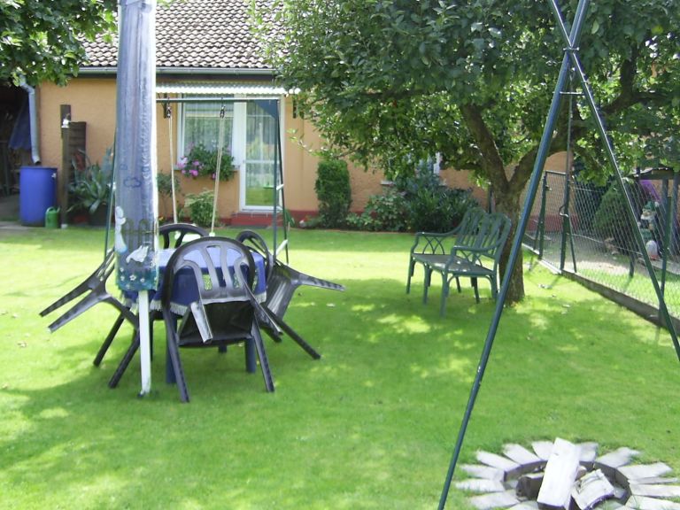 Ein Rasenplatz hinter der Ferienwohnung mit Schaukel, Sitzgelegenheit und Feuerstelle lädt zu Sport, Spiel oder einfach zur Erholung ein. Der Holzbackofen, der im Jahre 2000 errichtet wurde, lädt zur Geselligkeit. Gerne bereiten wir mit unseren Gästen einen Brotteig den wir dann zusammen im Ofen backen lassen. Auf dem Grundstück am Rhin können sie entspannen und den Altag vergessen machen. Für die warmen Tage empfiehlt sich ein Sprung ins kühle Nass.